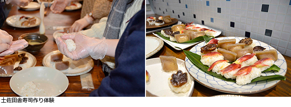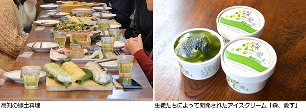 このイベントは高知県中芸地域の魅力を多くの人に知ってもらいたい、という思いから企画され、当日は「土佐田舎寿司」をはじめとする郷土料理や、中芸地域が日本遺産認定されたことをきっかけに生徒たちによって開発されたアイス「森、愛す」がふるまわれました。